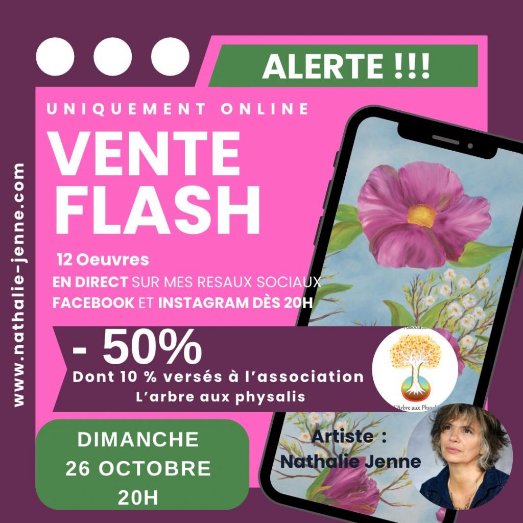 Art et émotion s’invitent dans votre quotidien. Le dimanche 26 octobre à 20h, je vous donne rendez-vous en direct sur mes réseaux sociaux Instagram et Facebook pour une vente en ligne exceptionnelle de plusieurs œuvres originales issues de mon atelier.